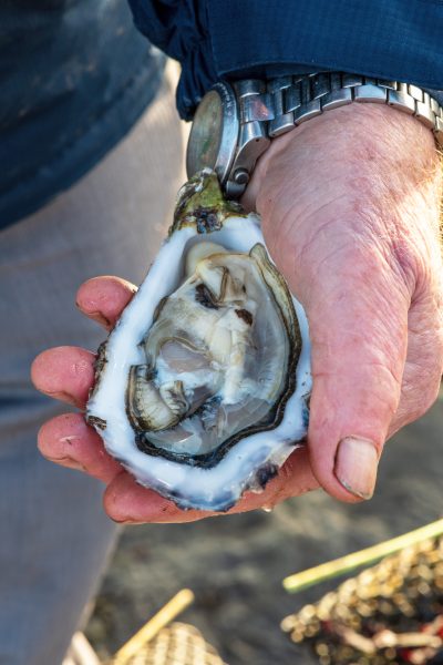 shucked and in the half shell – on a bed of ice with lemon wedges.